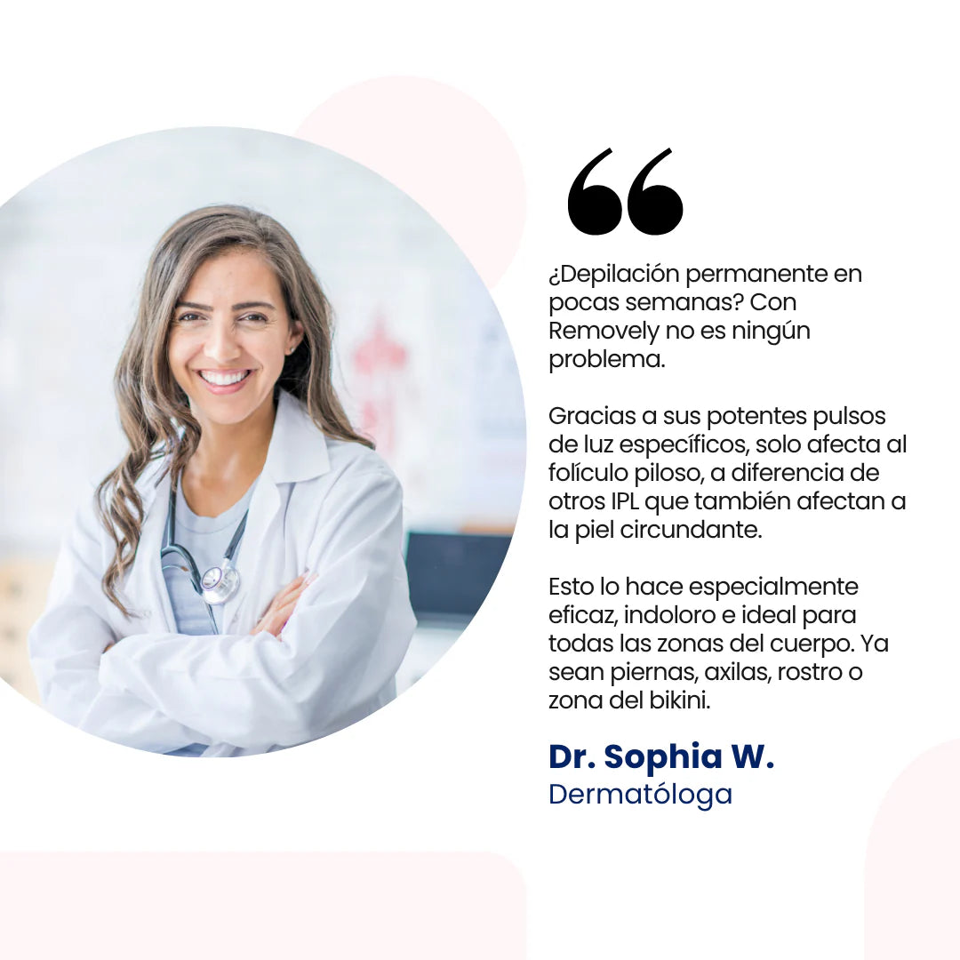 Sí, la tecnología IPL está clínicamente probada y comprobada. Los dispositivos Removely IPL están diseñados para ser seguros y efectivos cuando se usan según las instrucciones. Para mayor seguridad, el dispositivo ha sido revisado por expertos.
